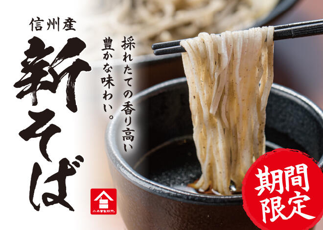 いつも小木曽製粉所をご利用いただきまして、ありがとうございます。 今年も『新そば』の季節がやって参りました。 小木曽製粉所では、11月から『新そば』のご提供を開始致します! 約1か月間※、 ざるそばも!つけそばも!ぶっかけそばも! 信州産『新そば』です!! ※都合により、各店で開始時期・終了時期が若…続きを読む